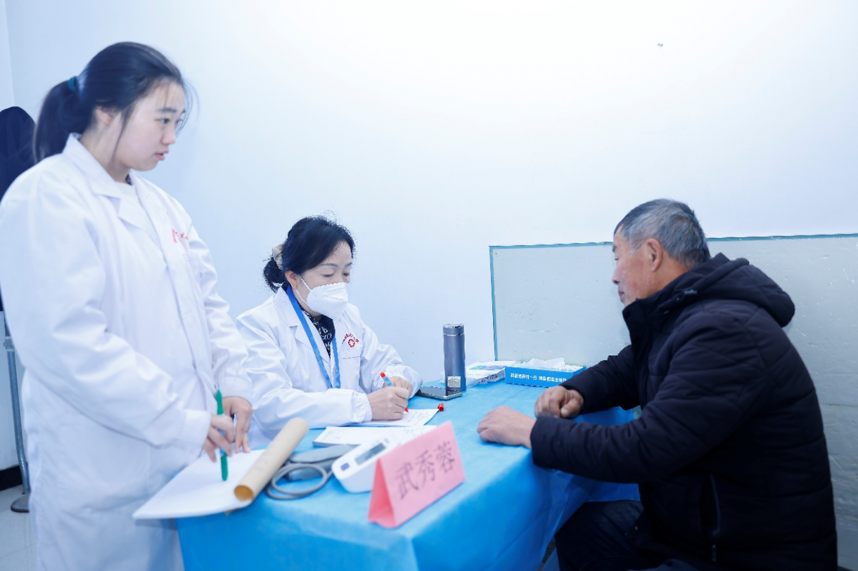 12月3日上午,来自中国中医药研究促进会三部六病分会、山西中医药大学附属医院、山西医科大学第二医院、山西省肿瘤医院的专家团队在桐峪镇中心卫生院开展了集中义诊,专家们耐心细致地为前来就诊的群众进行疾病诊断、健康咨询。针灸推拿诊室,中医专家在开展治疗的同时对卫生院护士进行了实操指导。本次义诊共接诊150余名村民。活动现场同时发放了常用药品及编印的《健康养生手册》,帮助群众掌握实用的防病知识和自我保健技能。此外,医疗团队特别深入退伍老兵、军烈属、行动不便的高龄老人家中,开展上门义诊和健康随访,仔细查看既往病历后调整了用药方案,并叮嘱照料者日常护理要点,让困难群众足不出户也能享受到优质的医疗服务。